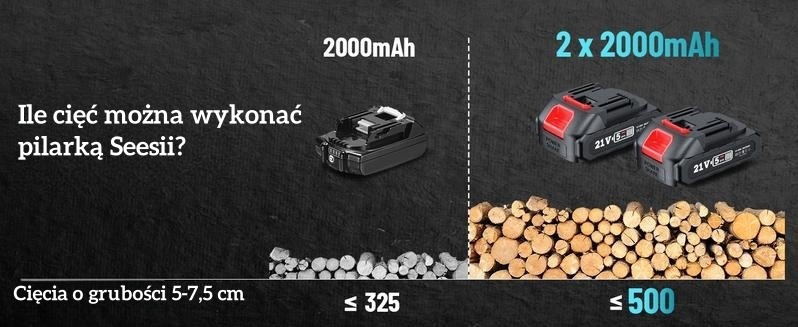 🔋 Podwójna Moc Akumulatora: 2× akumulatory 21V/4000mAh = 100 minut ciągłego cięcia (test: 8-calowy pień w 12 sekund!)