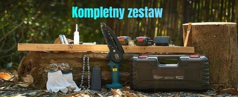 🎁 Premiowy Pakiet: Słupkowa pilarka + mini pilarka + 2 akumulatory + ładowarka + olej + rękawice + gogle