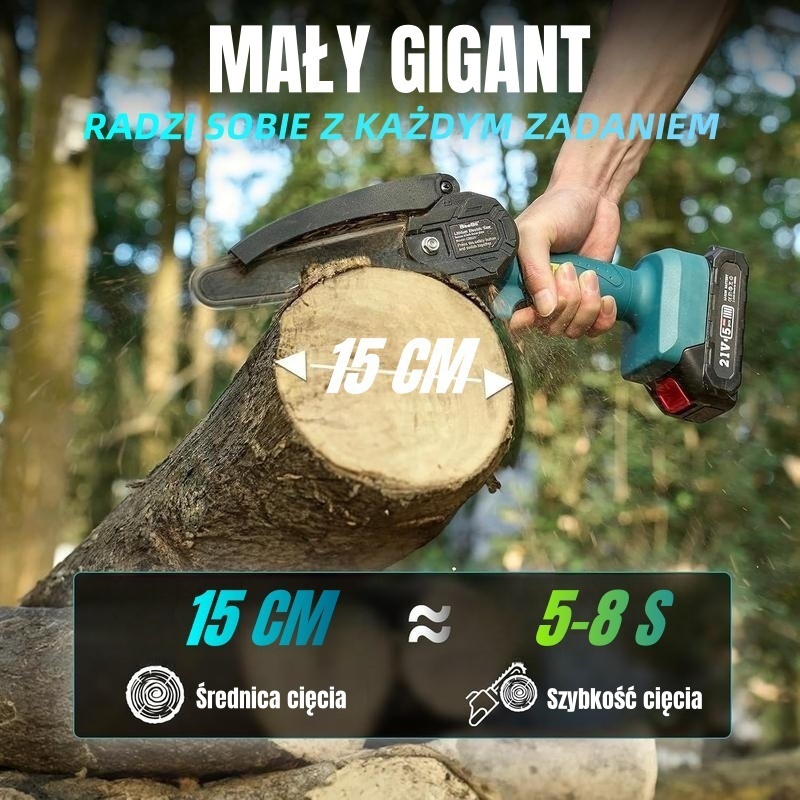 🎁 Premiowy Pakiet: Słupkowa pilarka + mini pilarka + 2 akumulatory + ładowarka + olej + rękawice + gogle