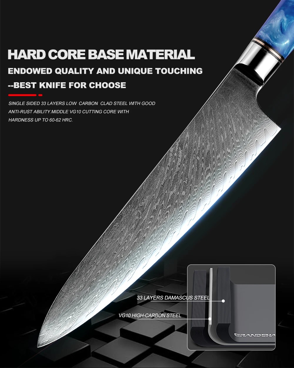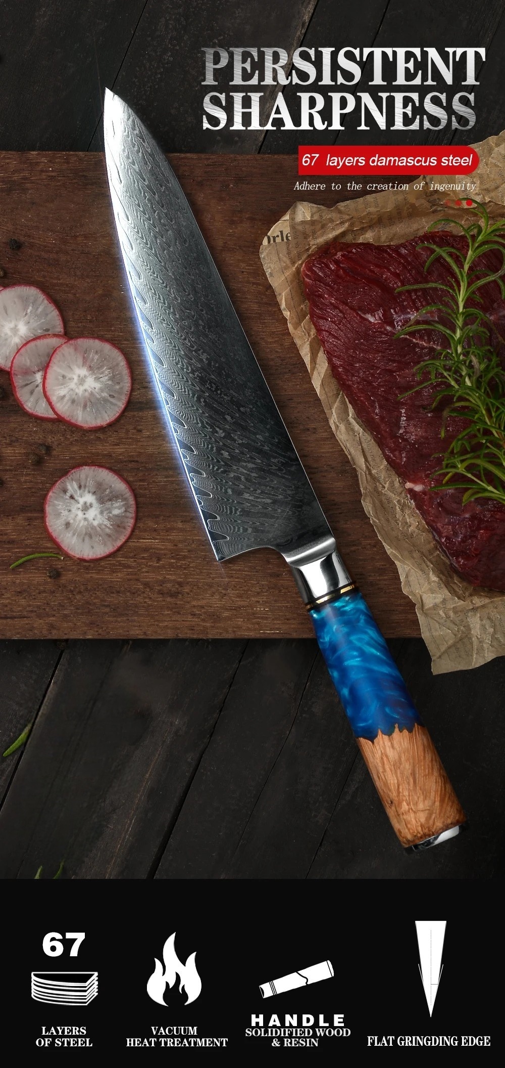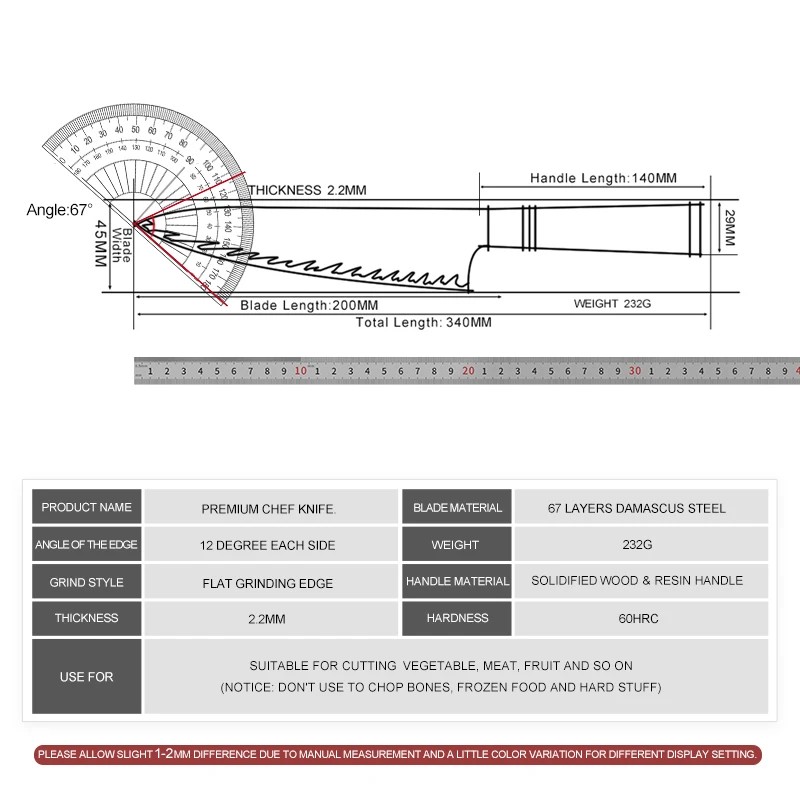 • Materiał ostrza: 67-warstwowa stal damasceńska